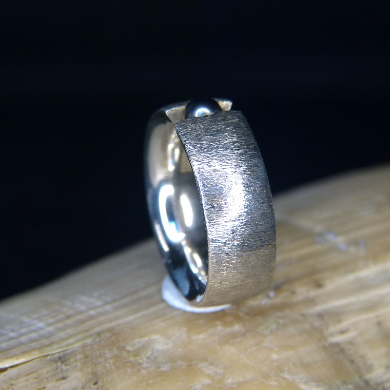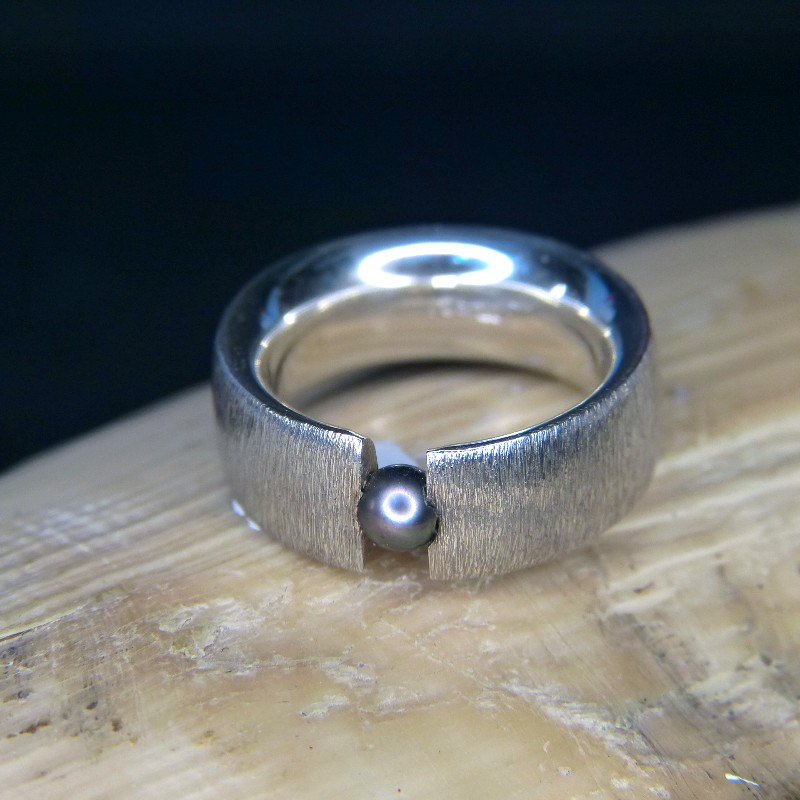 Schwerer Ring aus mattiertem Silber 925/- und echter grauer Süßwasserperle in einer Größe von ca. 4mm aus deer Kollektion "Bernd Wolf"