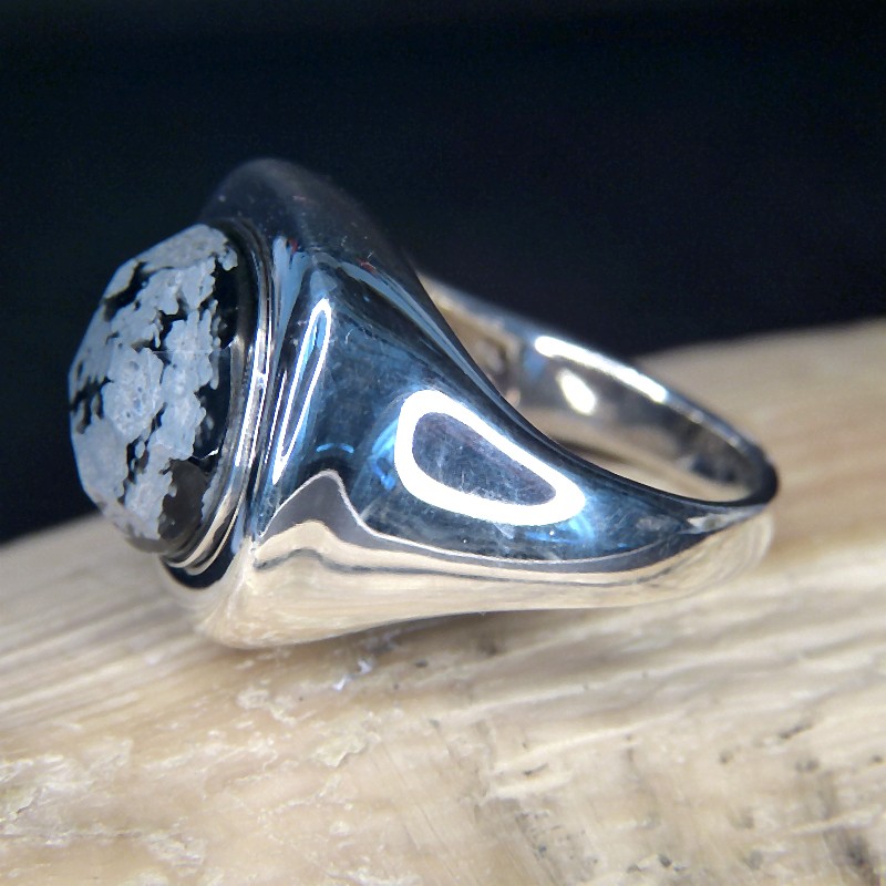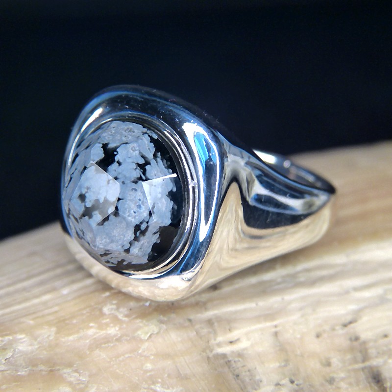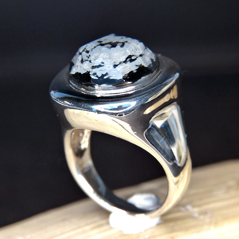Schwerer Ring aus Silber 925/- mit facettiertem Obsedian