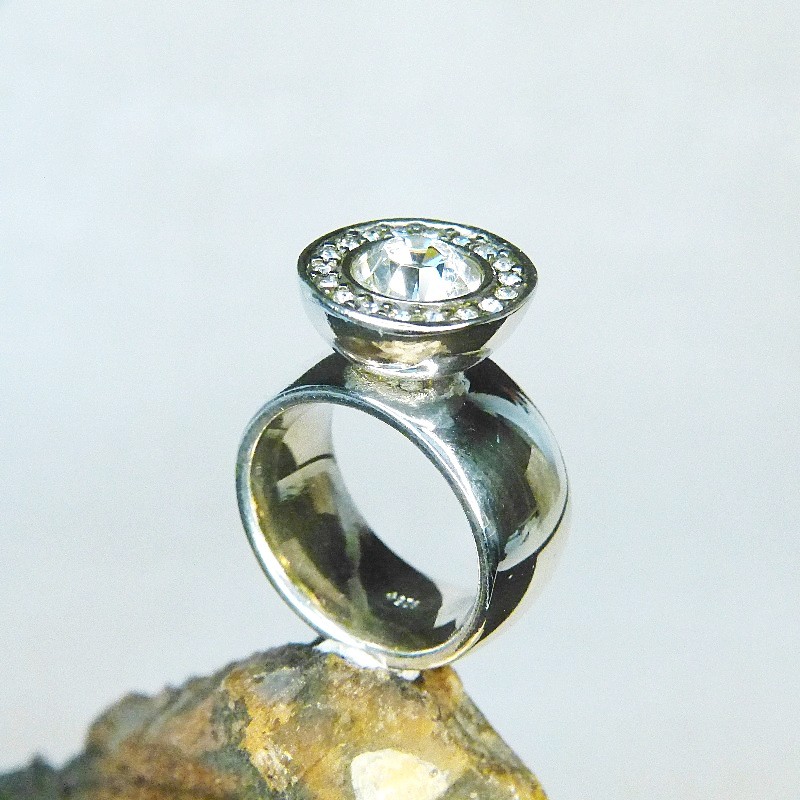 Schwerer Ring aus 925/-er Silber mit gefassten weißen Zirkonia.