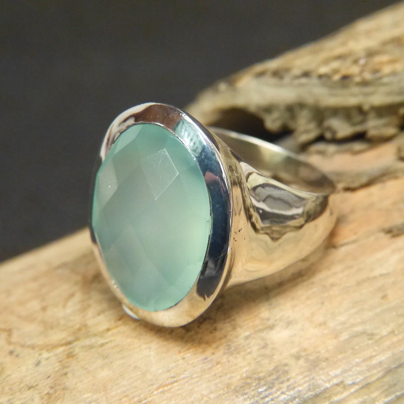 Klassischer Silberring 925/- mit grünlich schimmerndem und facettiertem Achat mit einer Größe von ca. 16 x 21mm.