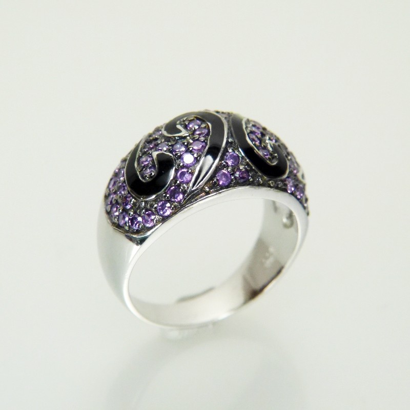 Verspielter Ring aus Silber 925/-, mit facettierten Zirkonia und Emaille.