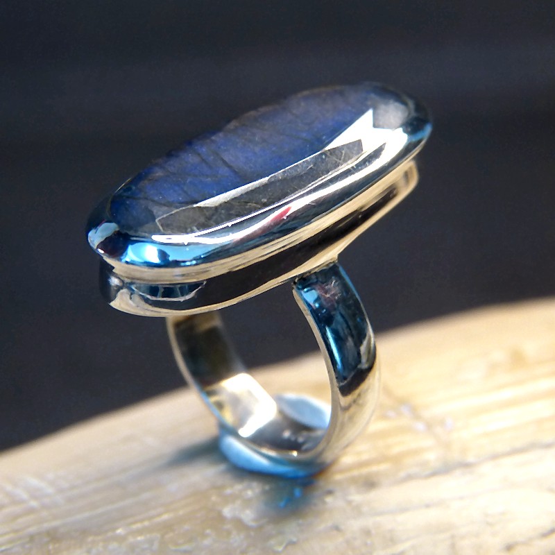 Ring aus Silber 925/- mit bläulich schimmerndem facettiertem Labradorit