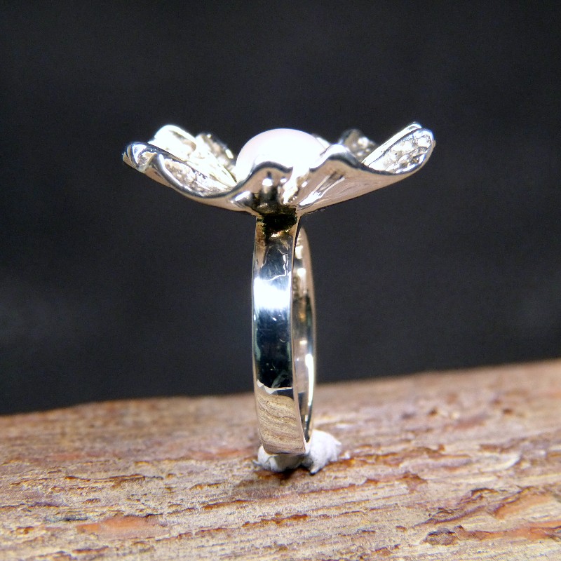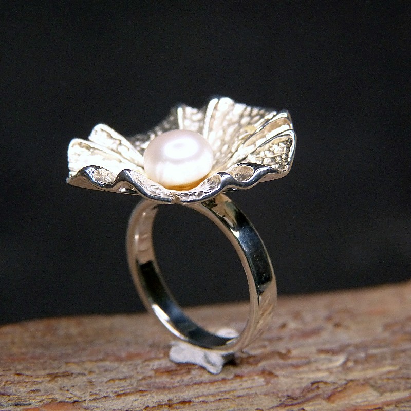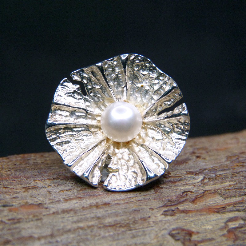 Silberring 925/- Motiv "Blüte" mit echter Perle, Innenseite mattiert, Durchmesser der Blüte ca. 27mm