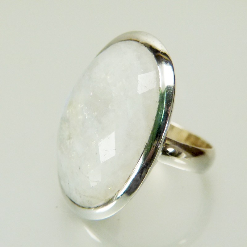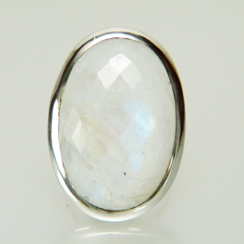 Ovaler Silberring 925/- mit einer Größe von ca. 24 x 34mm und eingefasstem facettiertem Mondstein.