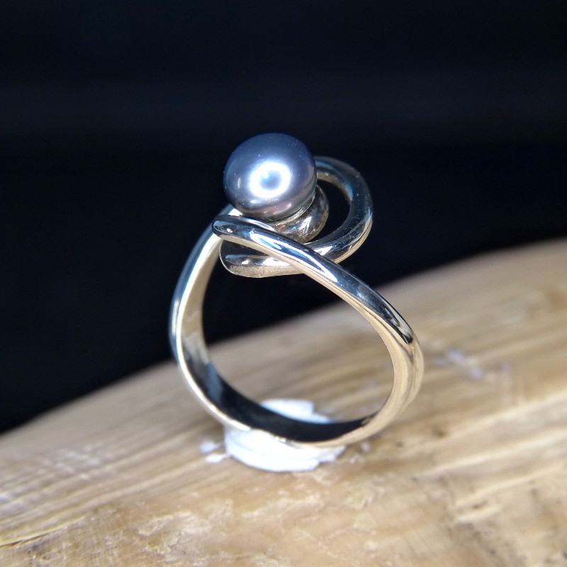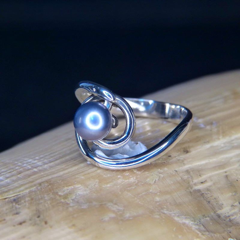 Ring aus Silber 925/- und echter grauer Süßwasserperle in einer Größe von ca. 6,5mm.