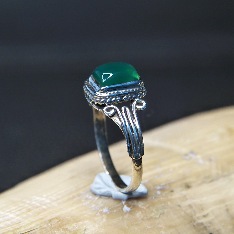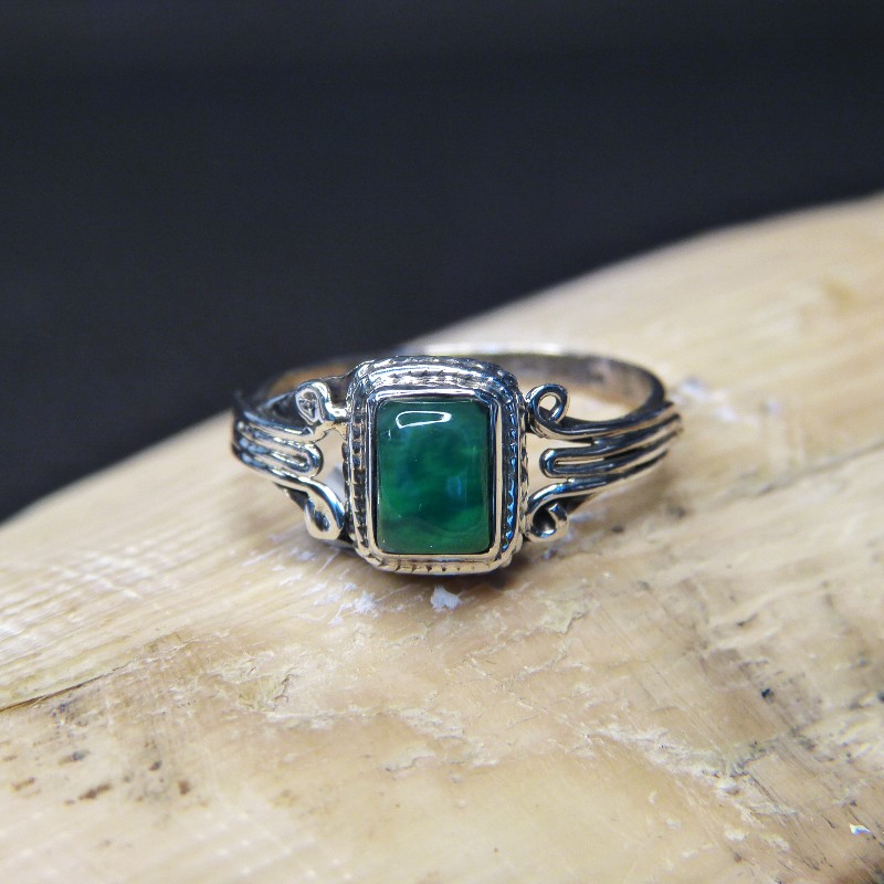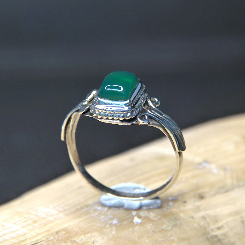 Zarter Ring aus Silber 925/- mit einem ca. 7 x mm großen grünem Achat.
