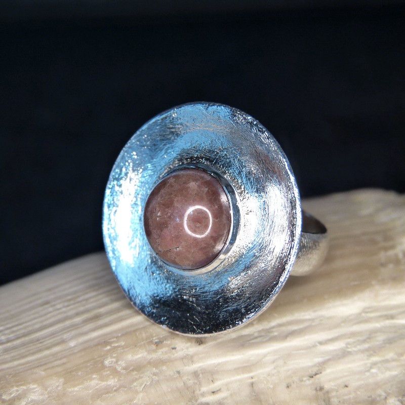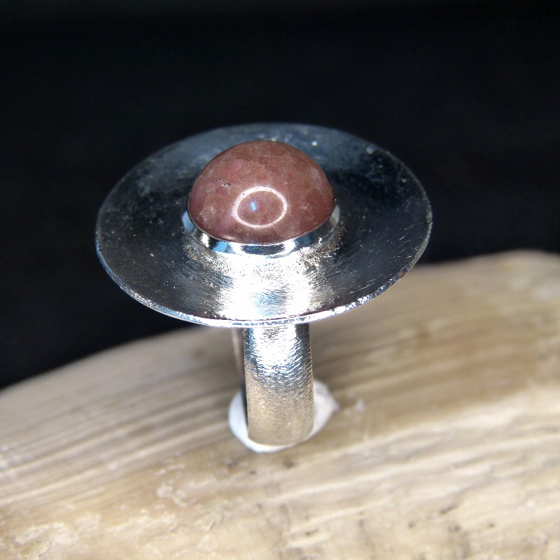 Ring aus mattiertem Silber 925/- mit einem Cabochon aus rötlichem Jaspis, Gesamtdurchmesser von ca. 28mm.