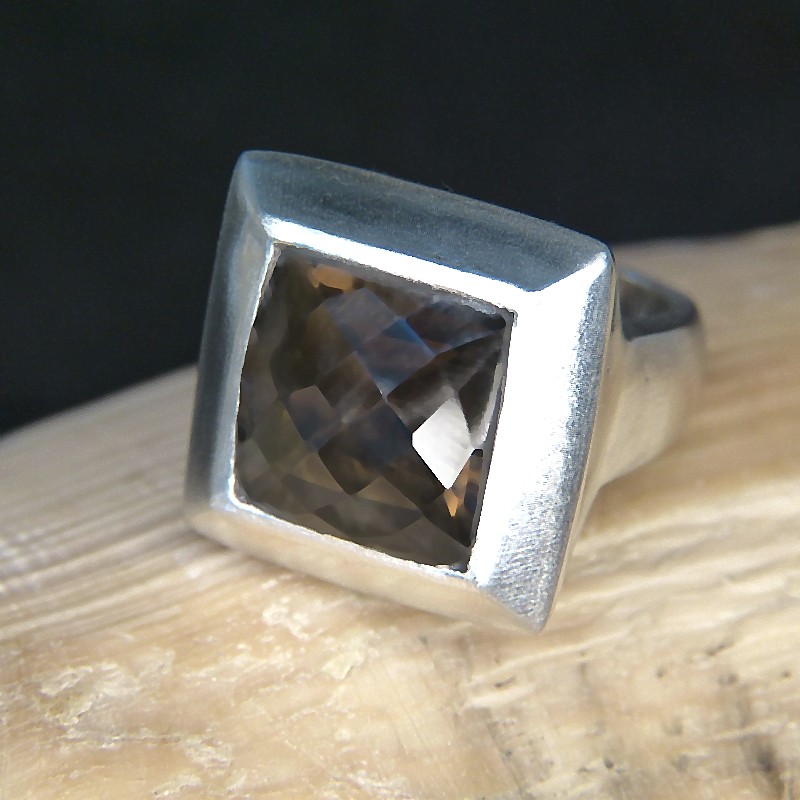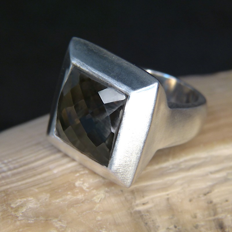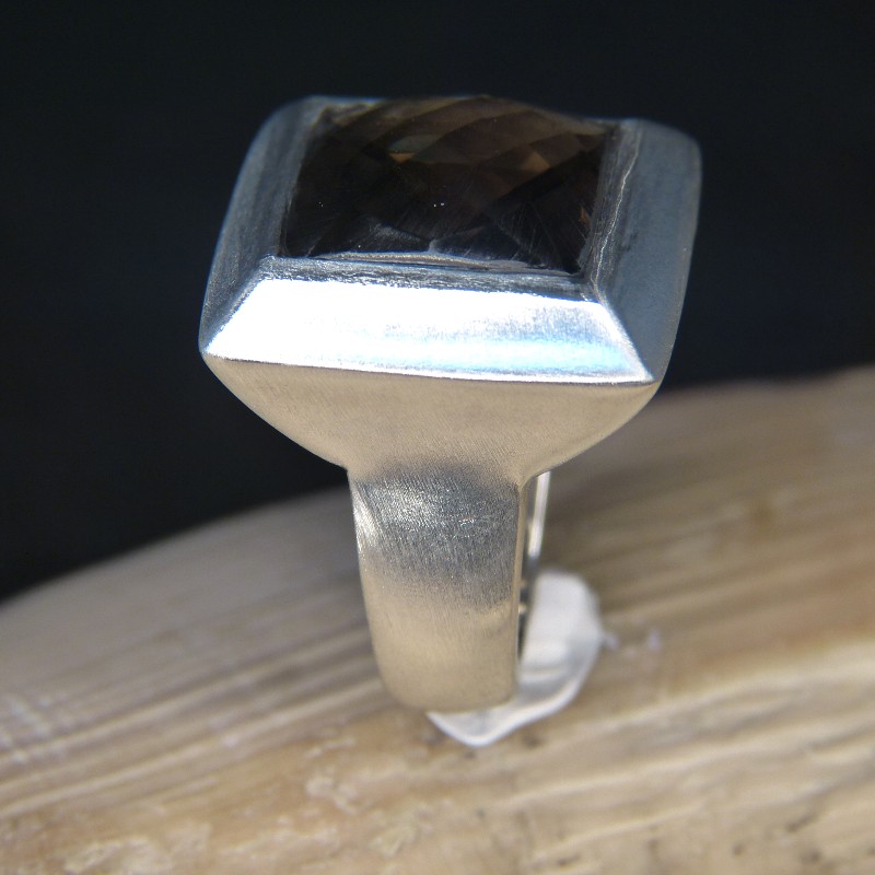 Auffälliger Ring aus mattiertem 925/-er Silber mit facettiertem Rauchtopas.