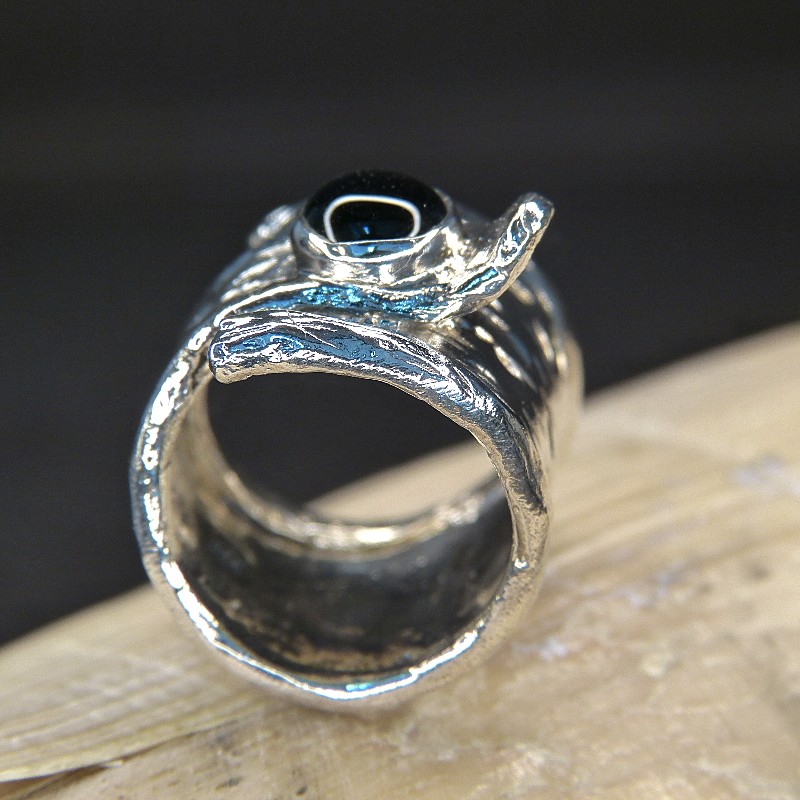 Ring aus Silber 925/- mit gehämmerter Oberfläche und echtem Amethyst oder Onyx.