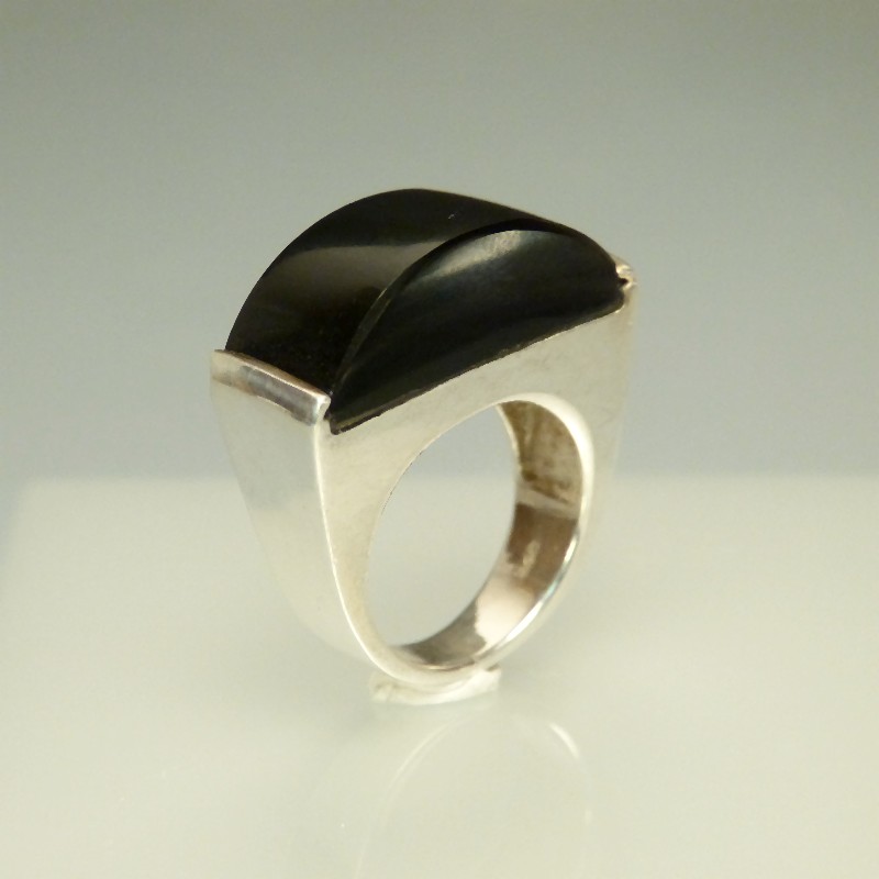 Ring aus 925/-er Silber mit einem quer gearbeitetem schwarzen Onix.