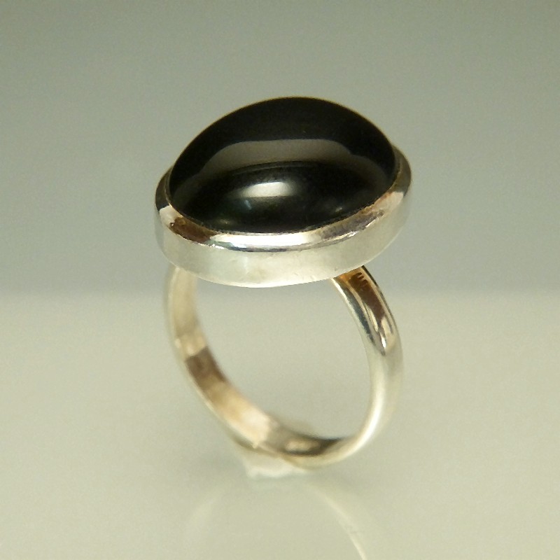 Ring aus 925/-er Silber mit einem schwarzen Onix-Cabochon.