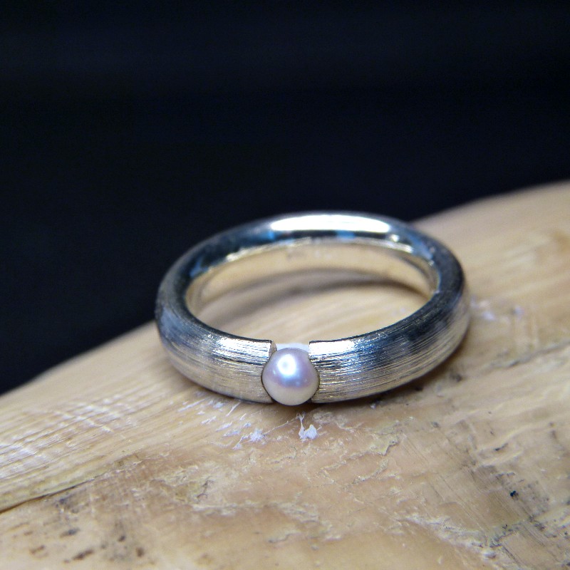 Massiver Ring aus mattiertem Silber 925/- mit einer ca. 4mm großen Süßwasserperle aus dere Kollektion "Bernd Wolf"