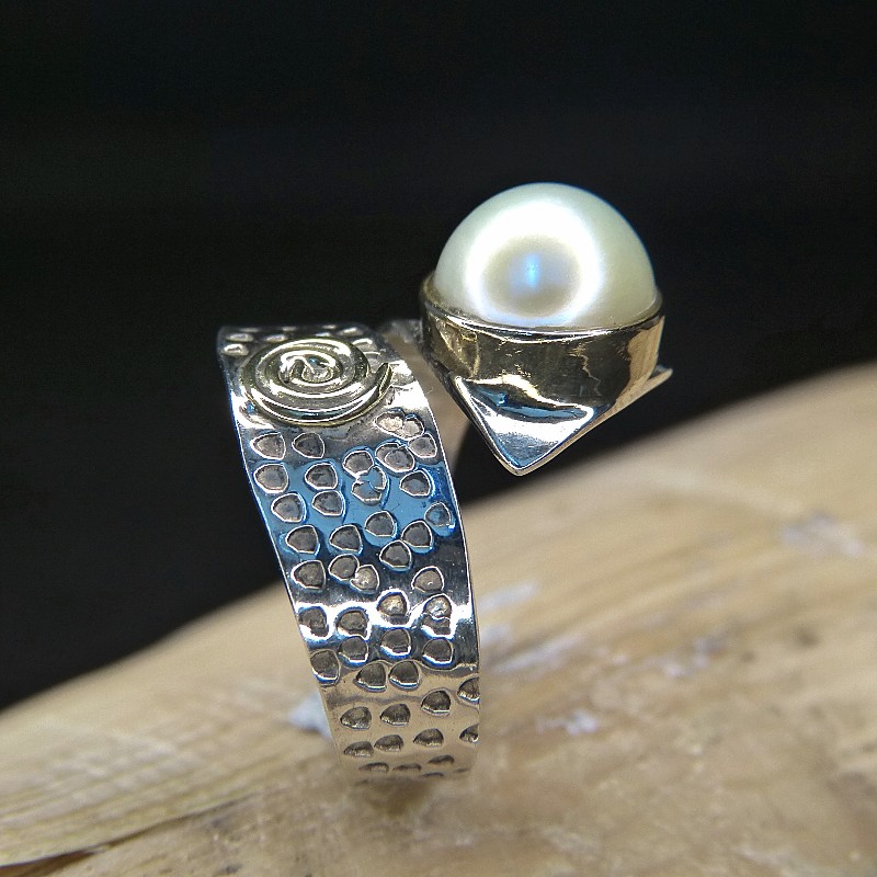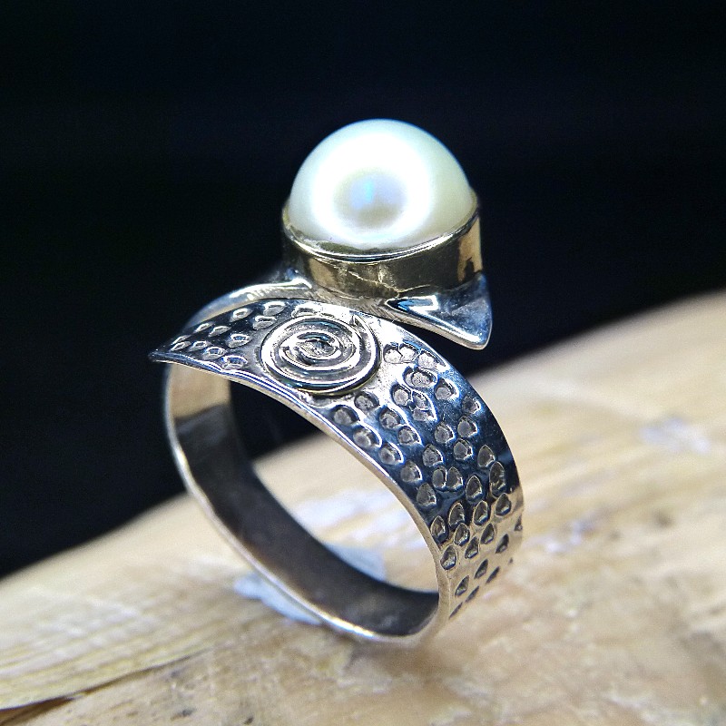 Auffälliger Ring aus Silber 925/- mit Teilvergoldung und Muschelkernperle.