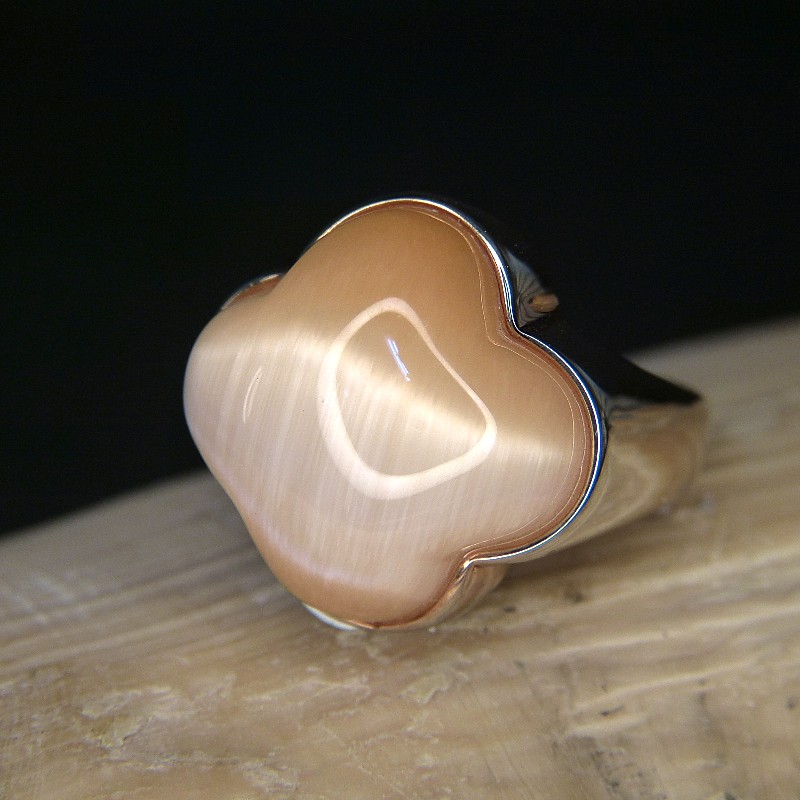 Auffälliger Ring aus rosèvergoldetem Silber 925/- mit einer Einlage aus Fiberoptik.