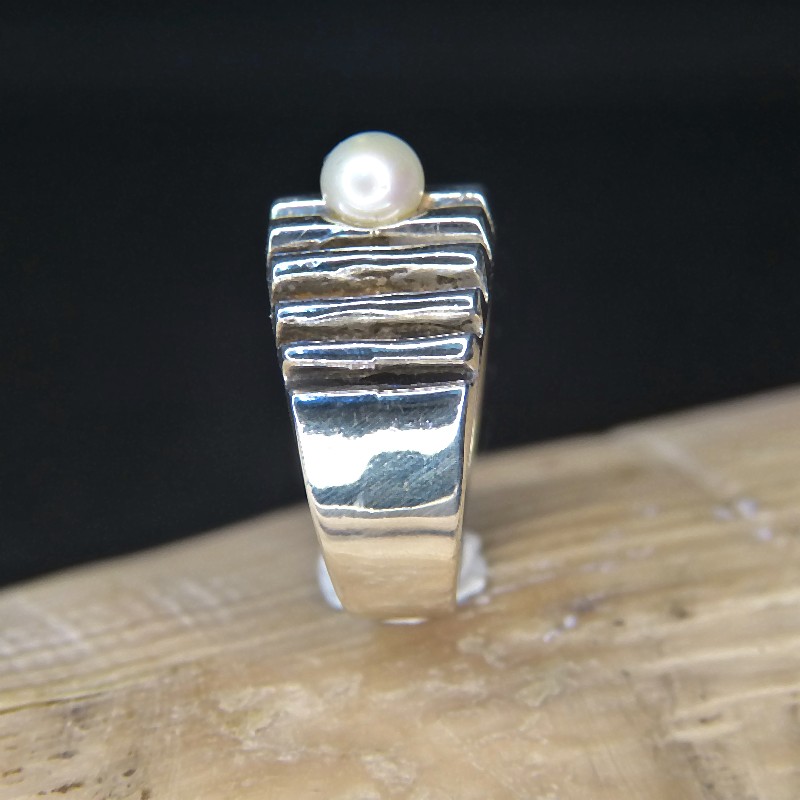 Silberring 925/- mit Querrillen und einer ca. 5mm großen Süßwasserperle.