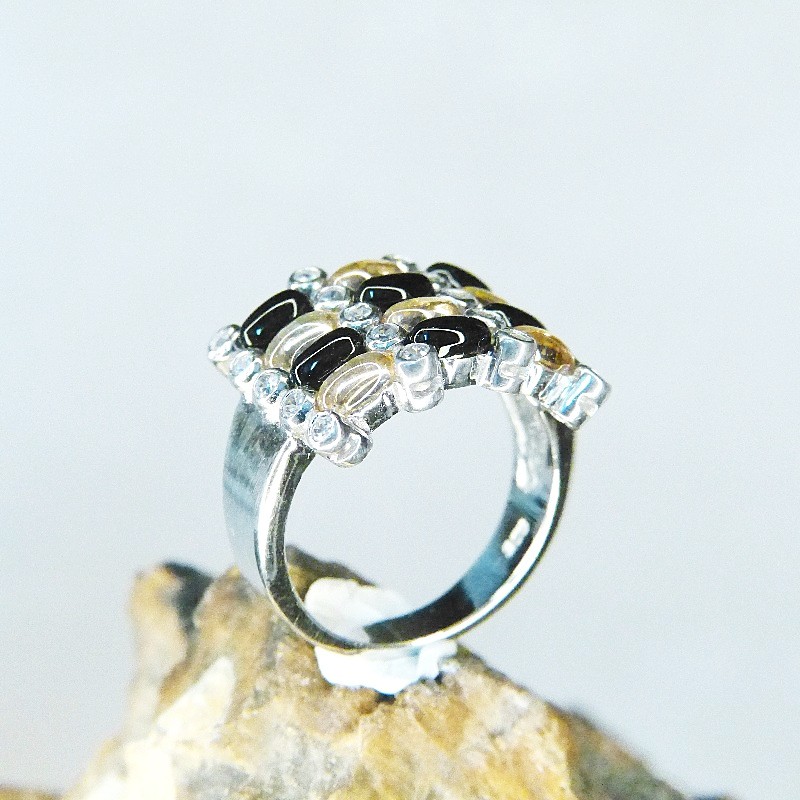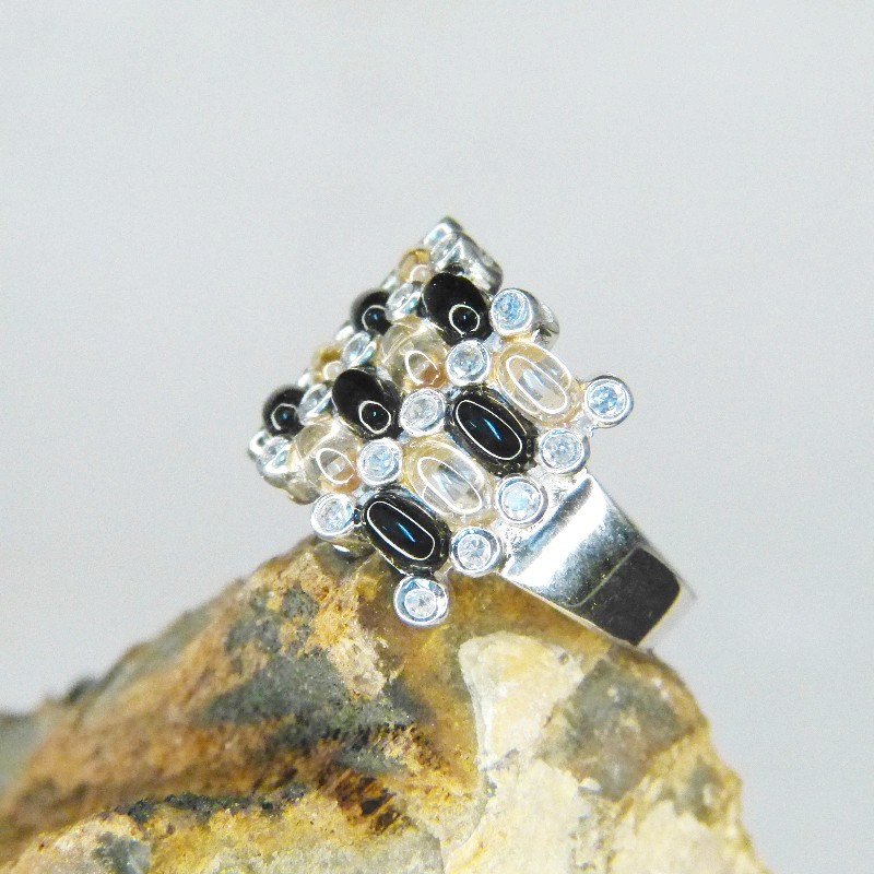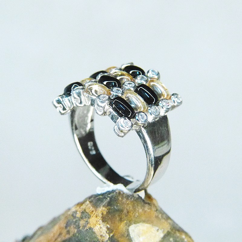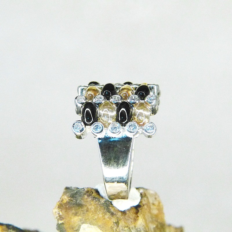 Silberring 925/- mit champagnerfarbenen, schwarzen und weißen Zirkonia gearbeitet.