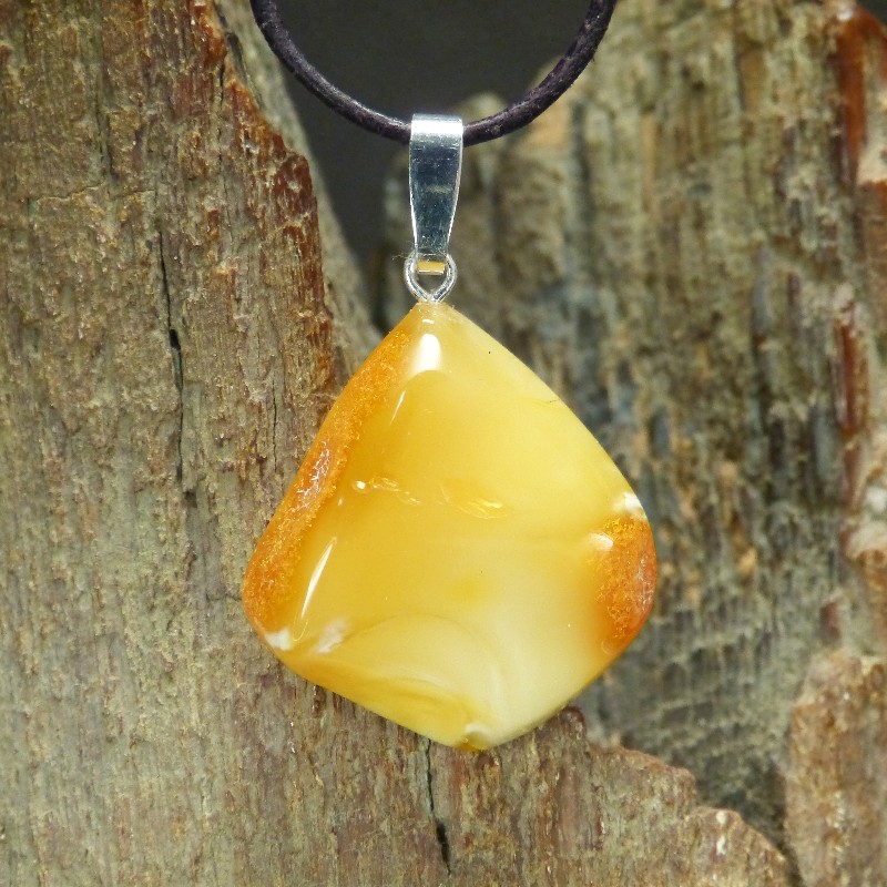 Bernstein-Anhänger gelblich mit Kruste