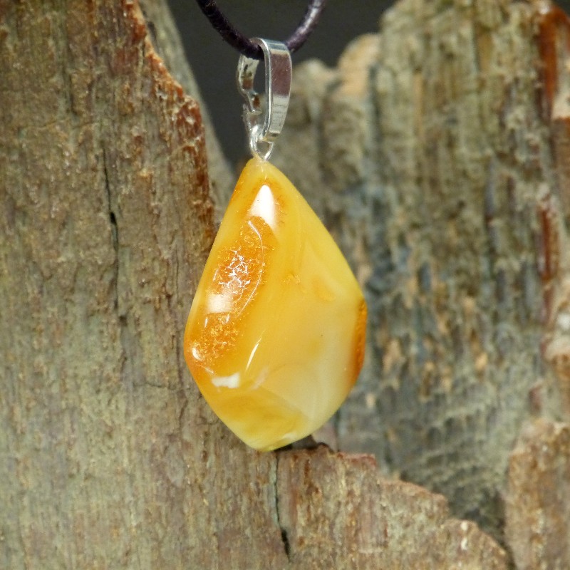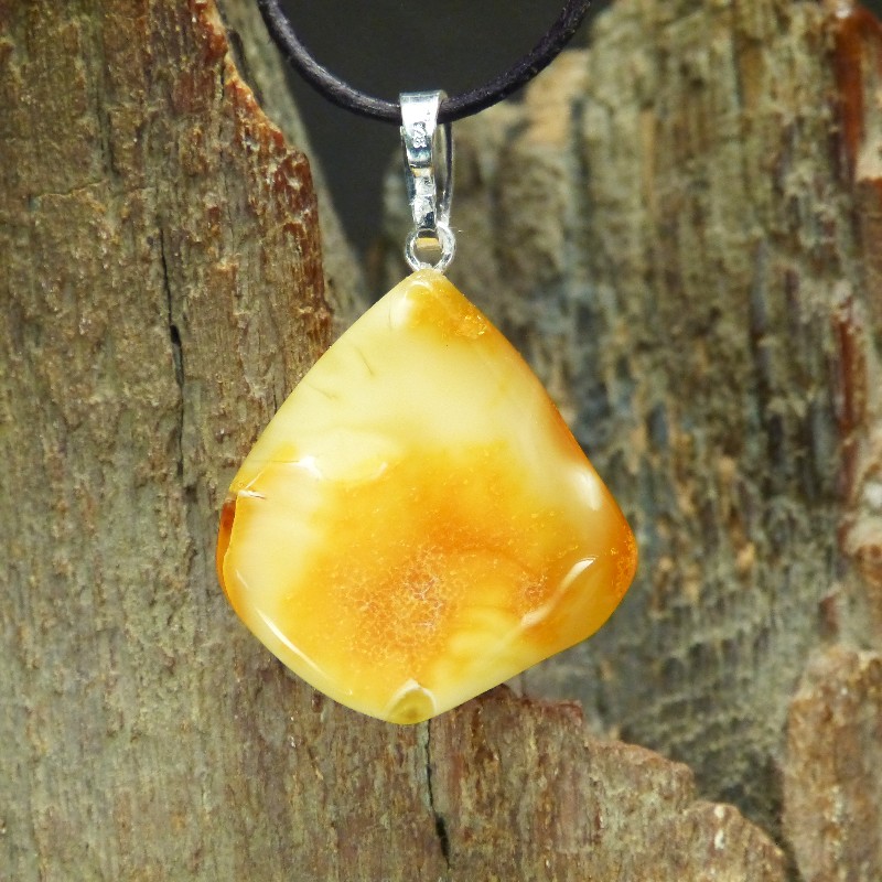 Anhänger aus gelblich/weißem Naturbernstein mit natürlicher Kruste und einer Öse aus Silber 925/-.