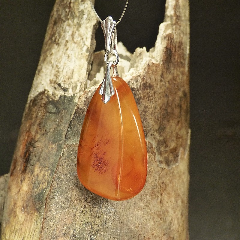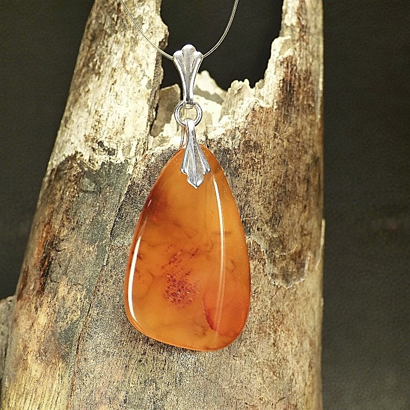 Flach geschliffener Anhänger aus Naturbernstein in trüber Färbung. Die