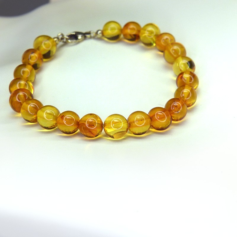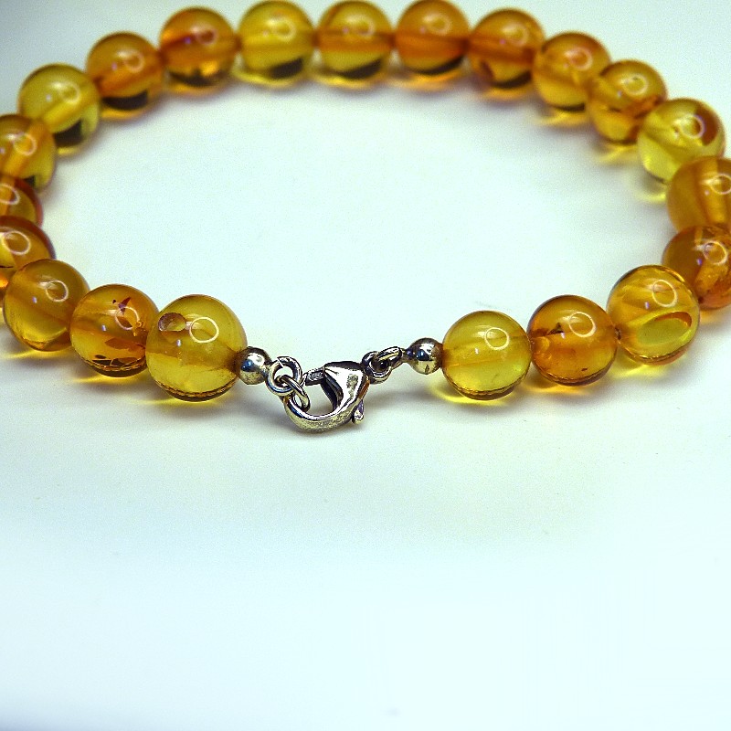 Armband aus handgeschliffenen Naturbernsteinkugeln mit einer Stärke von ca. 8 - 8,5 mm und ist geeignet für einen Armumfang von bis zu max. 19cm.