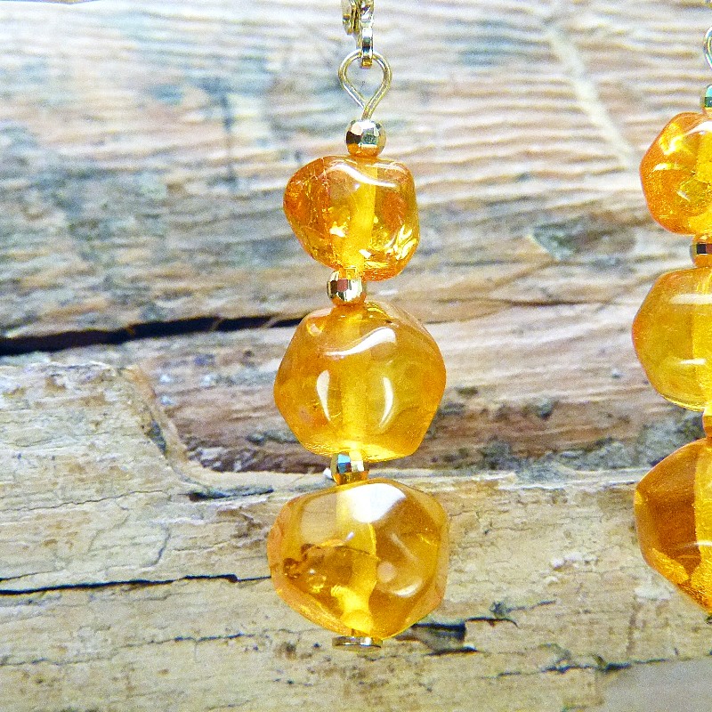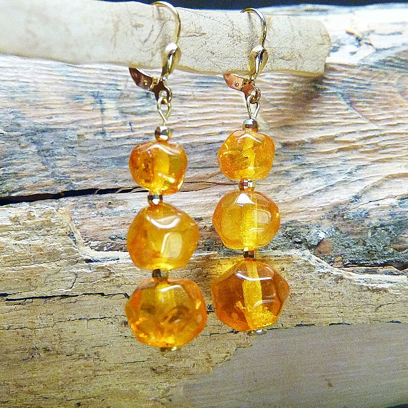 Hängeohringe mit handgeschliffenen Kugeln aus Naturbernstein in einem Durchmesser von ca. 9 - 12mm.