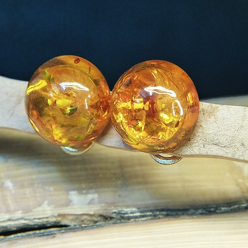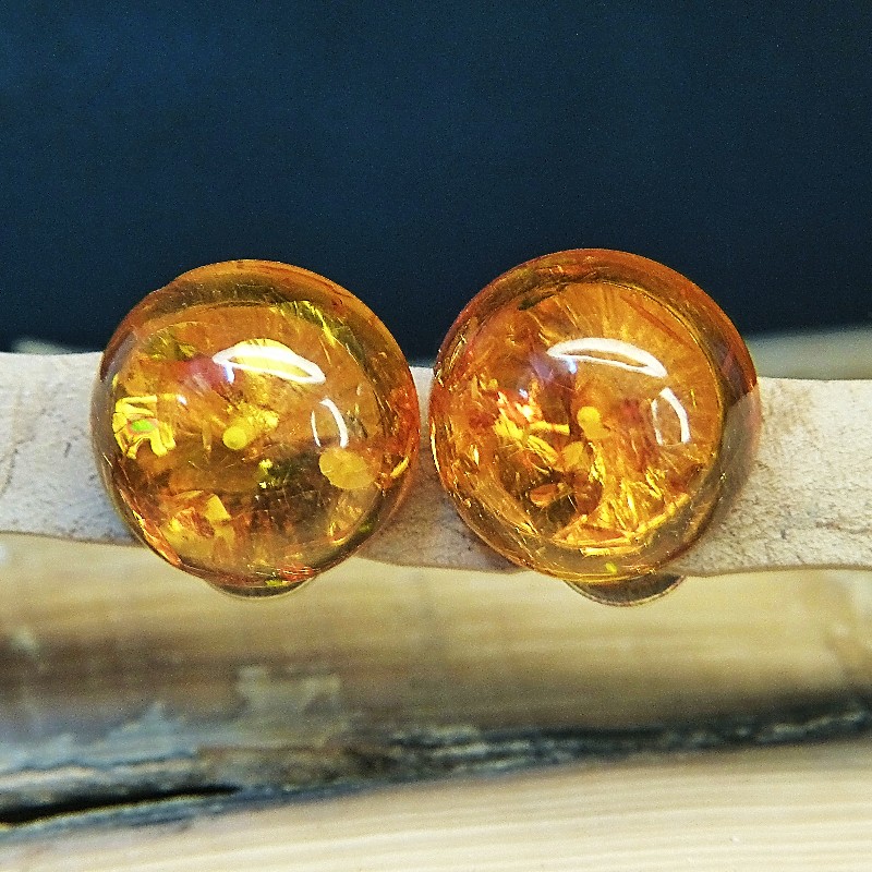 Dicke Ohrclipse aus schönen cognacfarbenen Naturbernsteinen mit patentierten Clipmechaniken aus Silber 925/-. Die spezielle Form der Mechanik hält ohne zu kneifen, was Clipträgerinnen zu schätzen wissen.