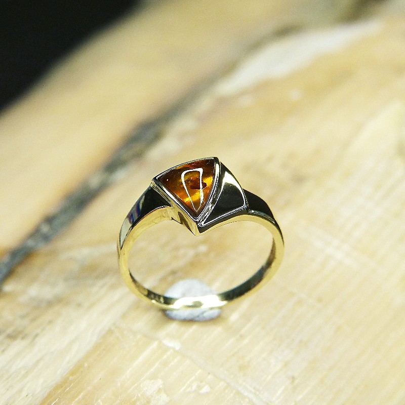 Goldring 333/- mit einem Naturbernstein in der Größe von ca. 7 x 9mm.