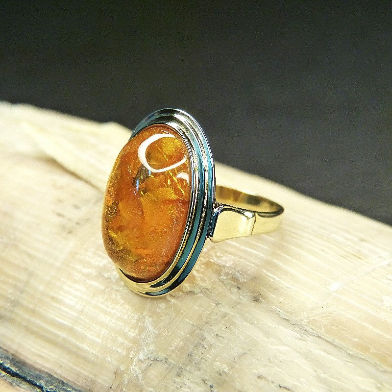 Goldring 333/- mit einem Naturbernsteincabochon in der Größe von ca. 20 x 13mm.