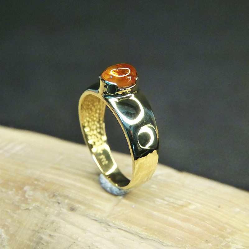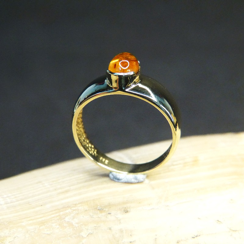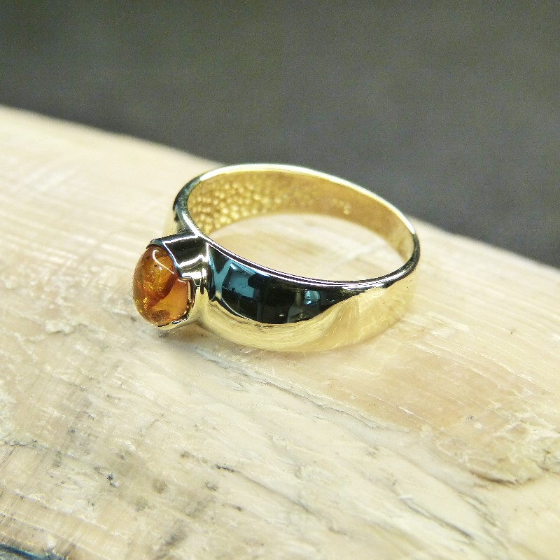 Goldring 333/- mit einem kleinen Naturbernsteincabochon in der Größe von ca. 6 x 7mm.