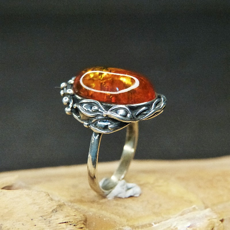 Ring aus 925/-er Silber im Antikfinish mit einem ca. 16 x 10mm großen Cabochon aus Naturbernstein.