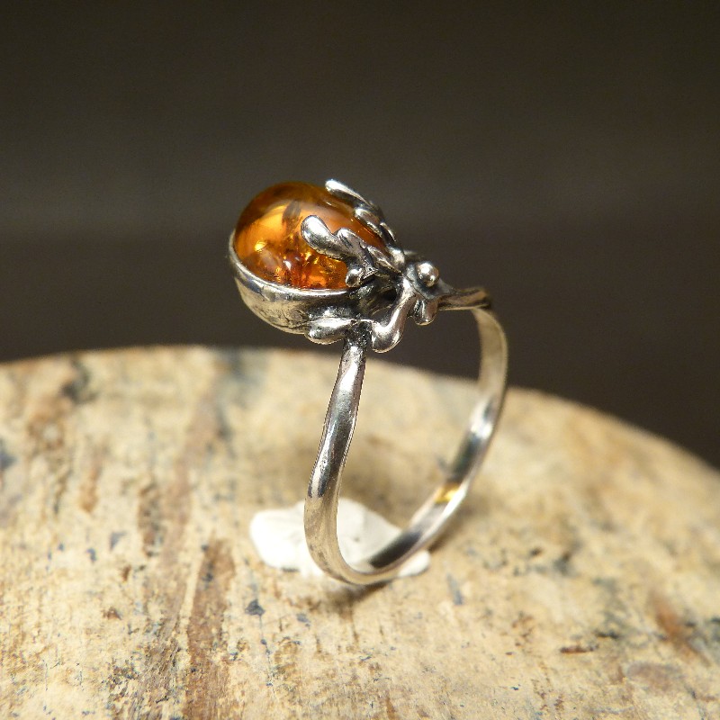 Ring aus 925/-er Silber im Antikfinish mit einem ca. 10 x 8 mm großen Cabochon aus echtem Naturbernstein.