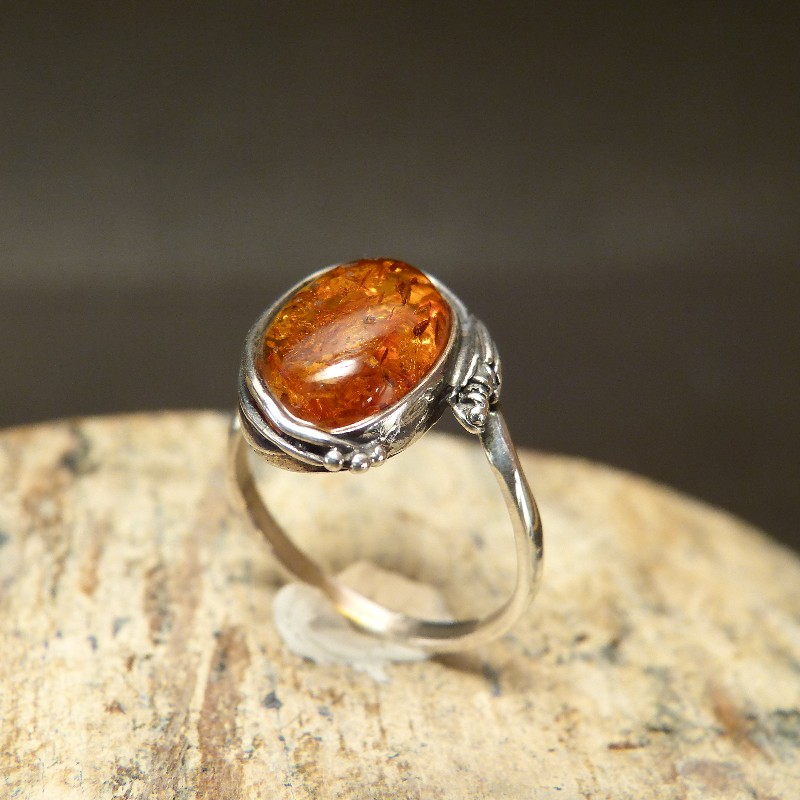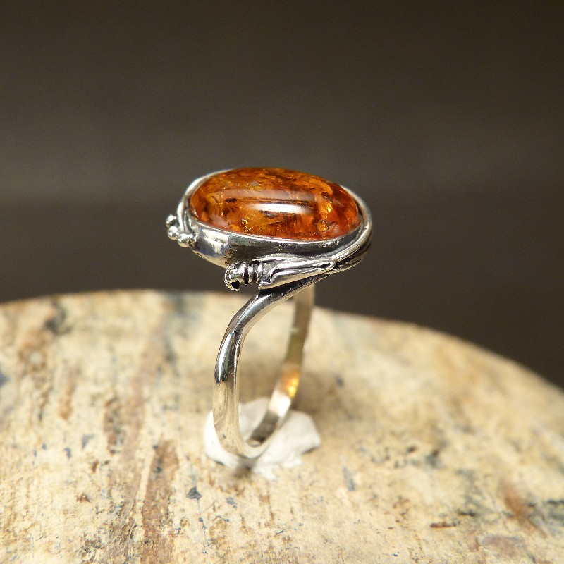 Ring aus 925/-er Silber im Antikfinish mit einem ca. 14 x 10 mm großen Cabochon aus echtem Naturbernstein.