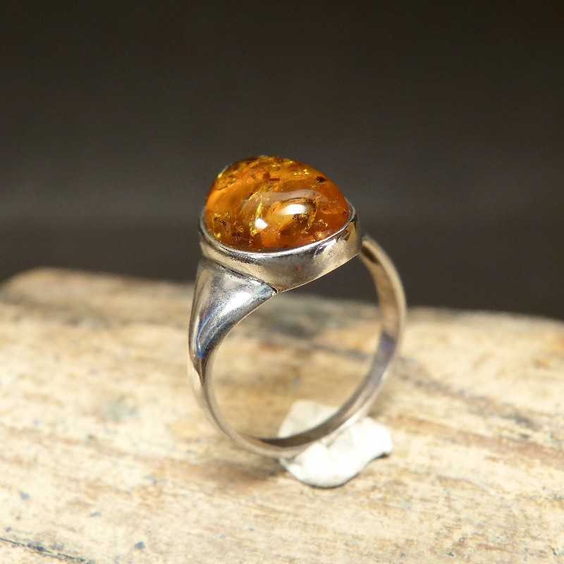 Ring aus 925/-er Silber mit einem ca. 14 x 10 mm großen Cabochon aus echtem Naturbernstein. Da Bernstein ein Naturmaterial ist, können Färbungen oder Einschlüsse von der Abbildung leicht abweichen.