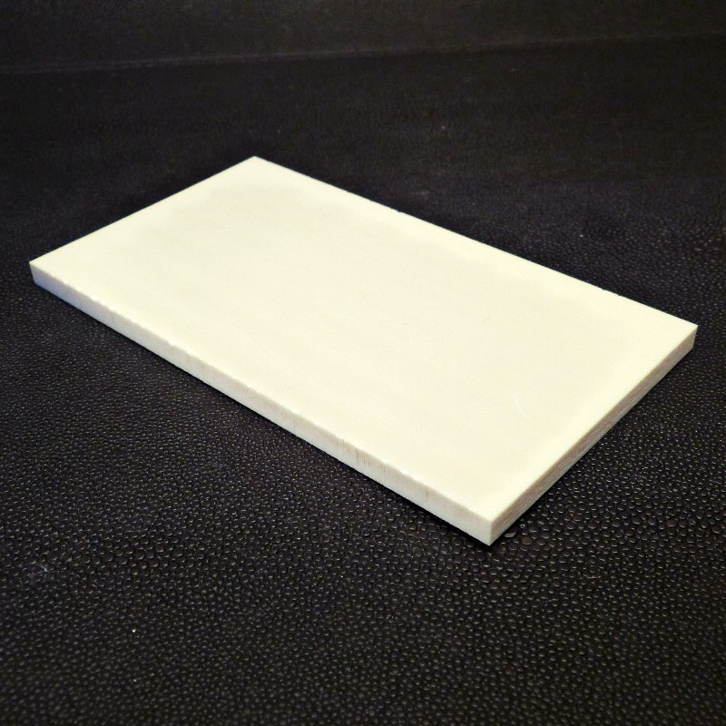 Kasein-Zuschnitt als Elfenbeinersatz in der Größe von ca. 132 x 73 x 6 mm.