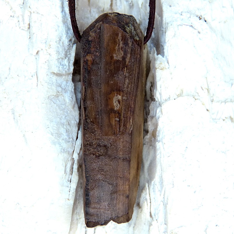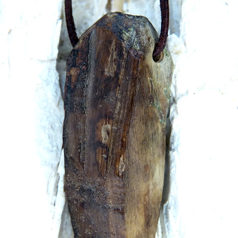Die Lieferung erfolgt mit einem lose geknoteten ca. 1m langen Band aus braunem Ziegenleder.