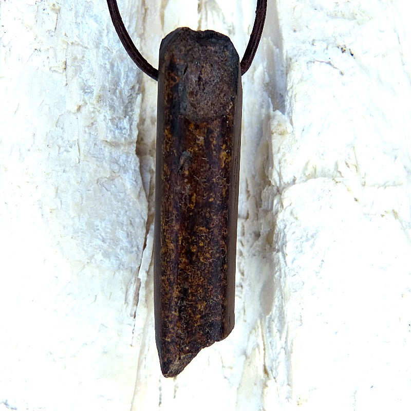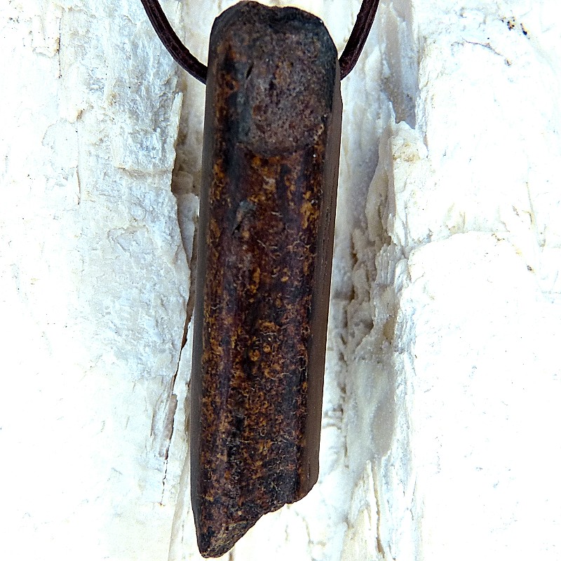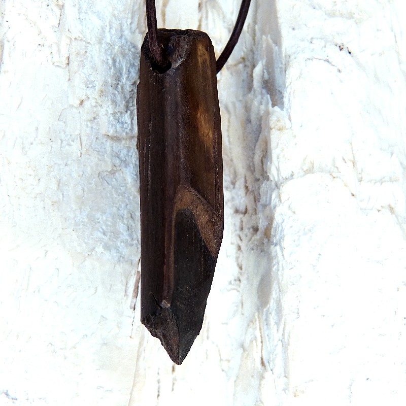 Die Lieferung erfolgt mit einem lose geknoteten ca. 1m langen Band aus braunem Ziegenleder.