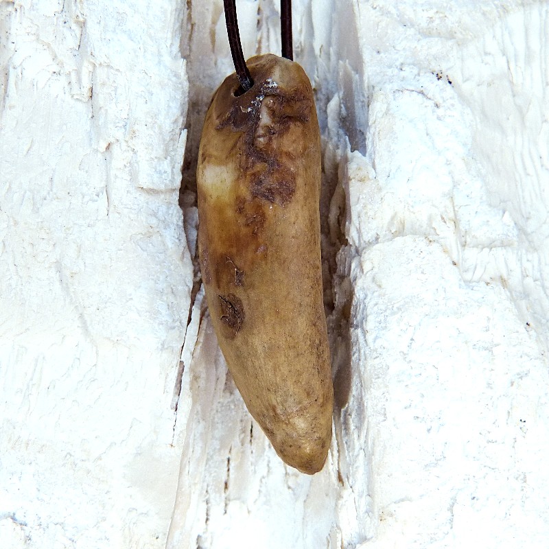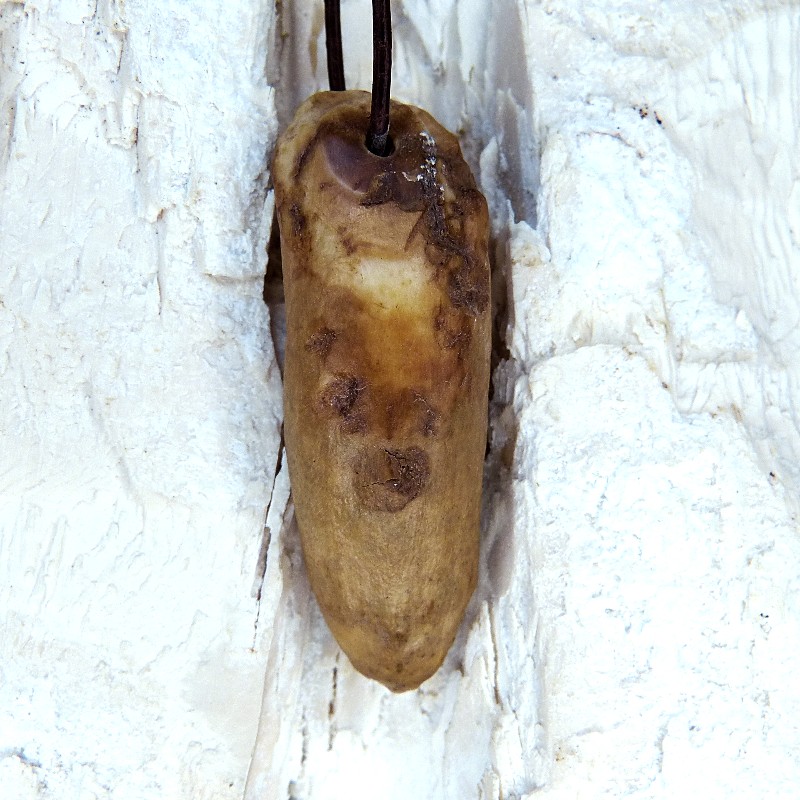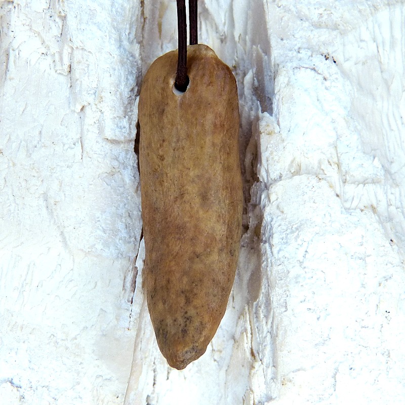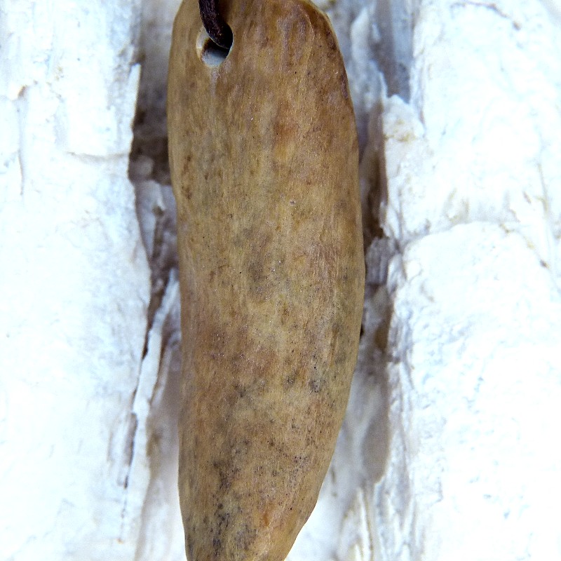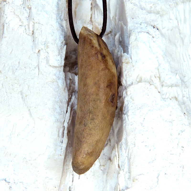 Die Lieferung erfolgt mit einem lose geknoteten ca. 1m langen Band aus braunem Ziegenleder.