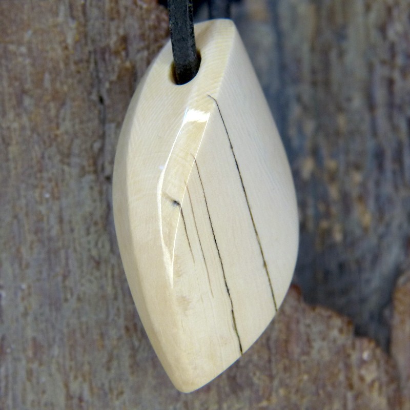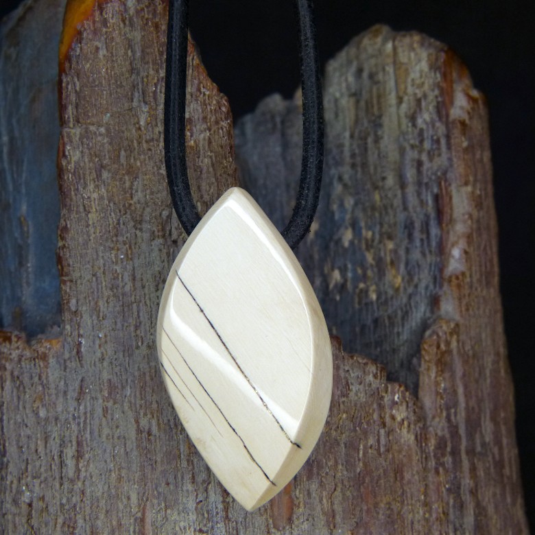 Massiver Mammut-Anhänger in Navetteform geschliffen mit natürlich cremigen Färbungen und feiner Maserung.