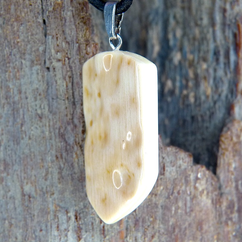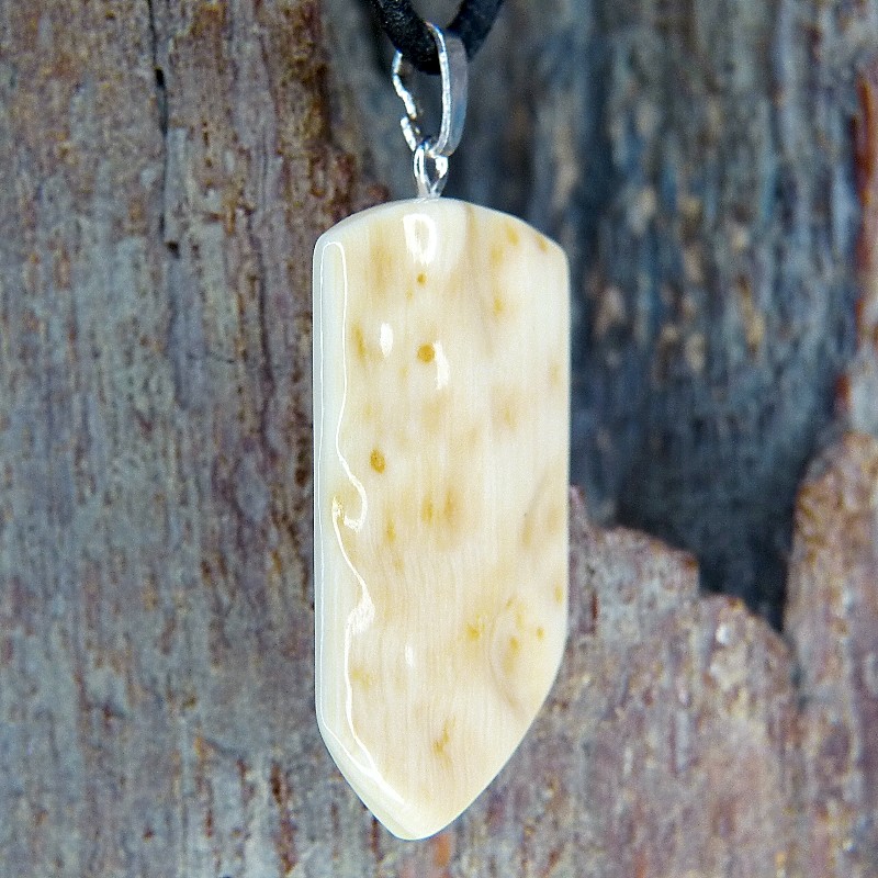 Anhänger aus cremigem Mammut-Elfenbein mit natürlicher unebener Oberfläche und heller Rückseite.