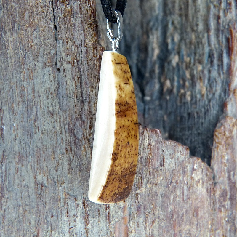 Anhänger aus cremigem Mammut-Elfenbein mit schöner natürlicher Rindenfärbung.