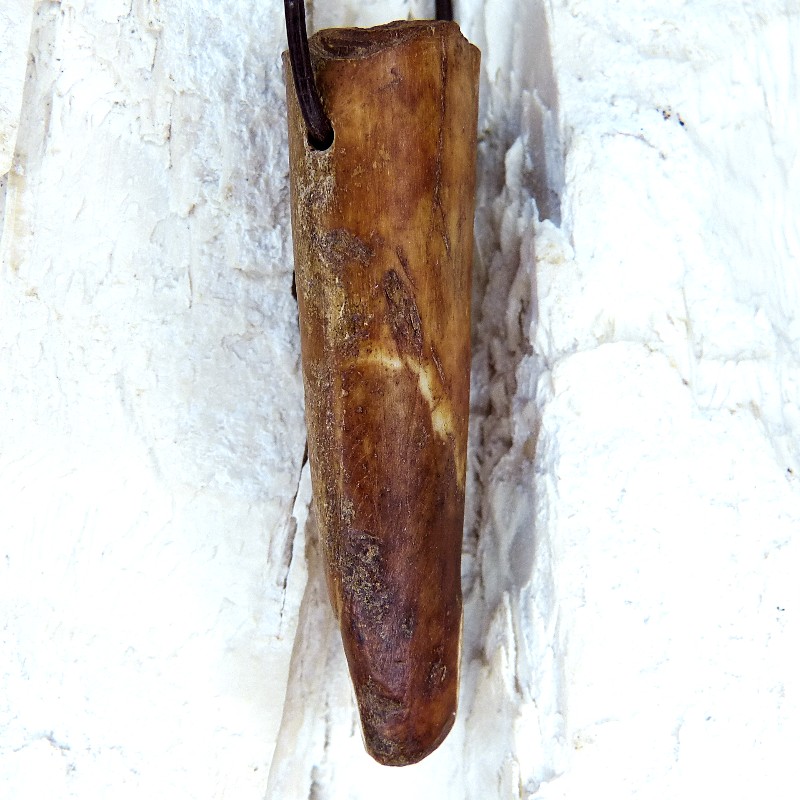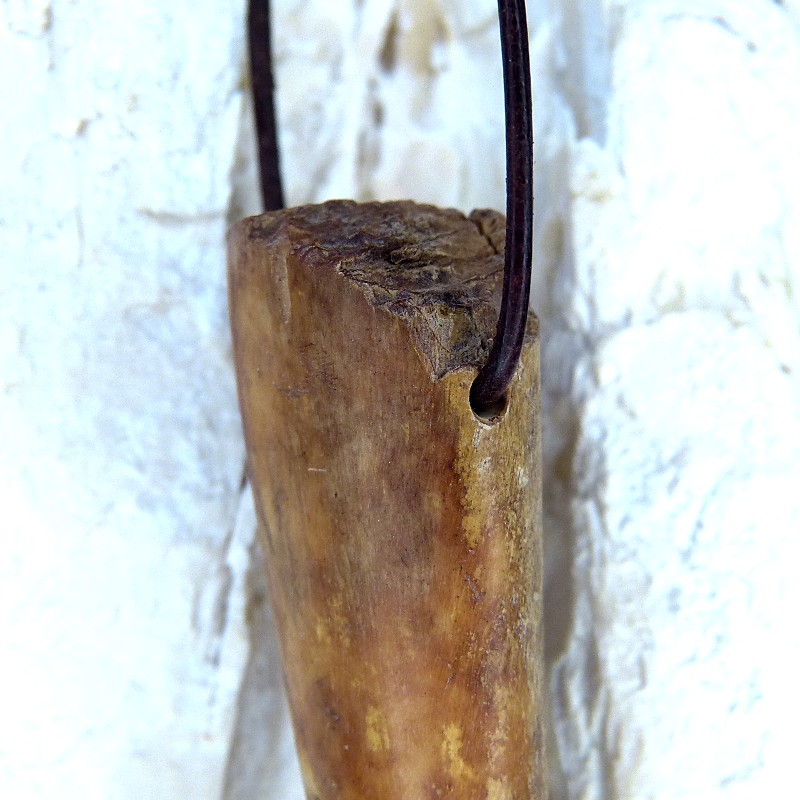 Die Lieferung erfolgt mit einem lose geknoteten ca. 1m langen Band aus braunem Ziegenleder.
