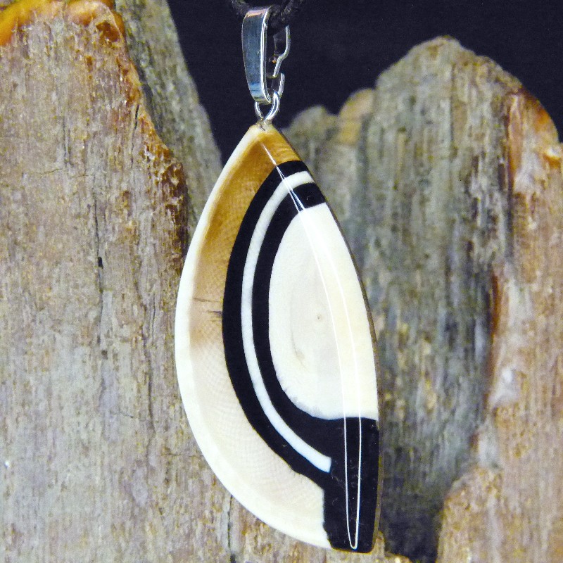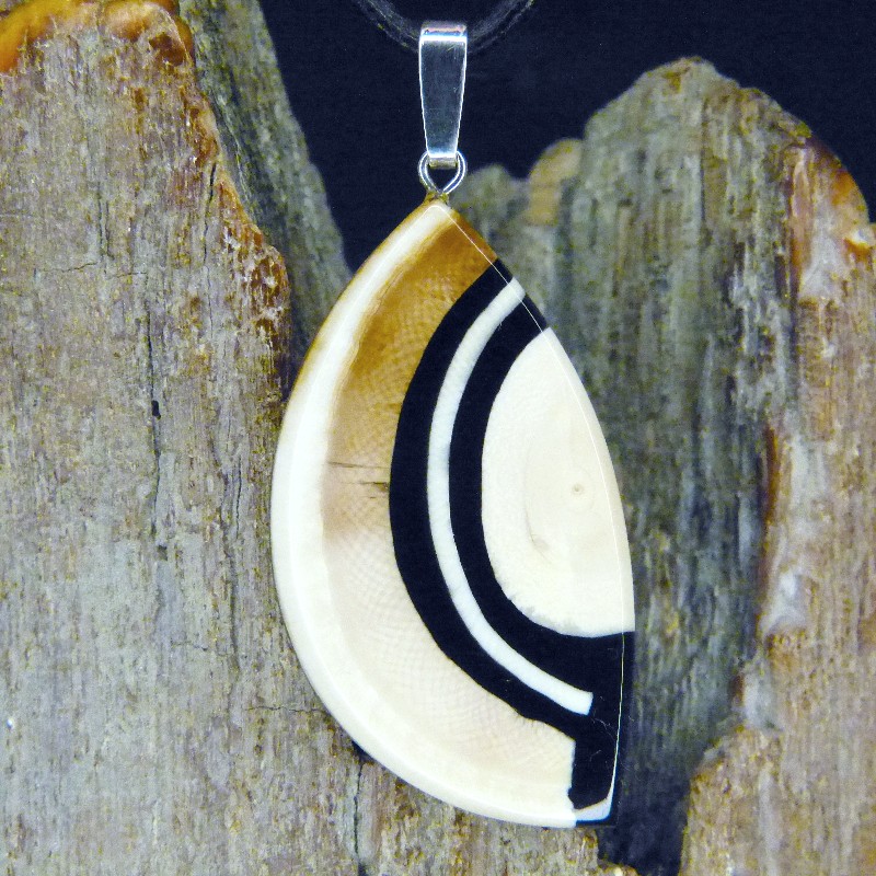 Anhänger aus fossilem Mammut-Elfenbein mit schönen braunen Färbungen und feiner Maserung.