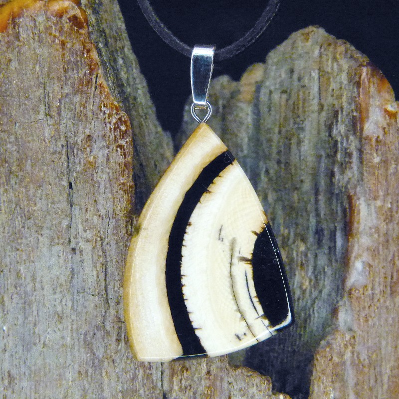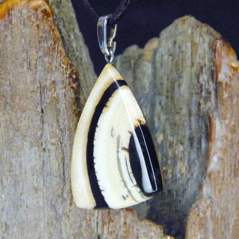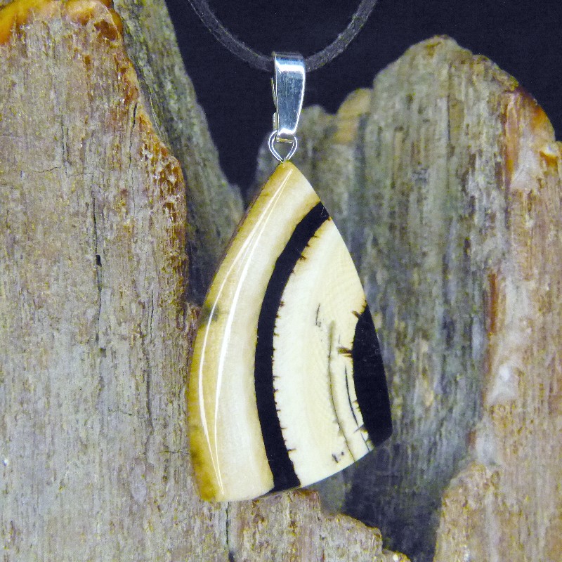 Anhänger aus fossilem Mammut-Elfenbein mit brauner Rindenfäbrung und feiner Maserung.