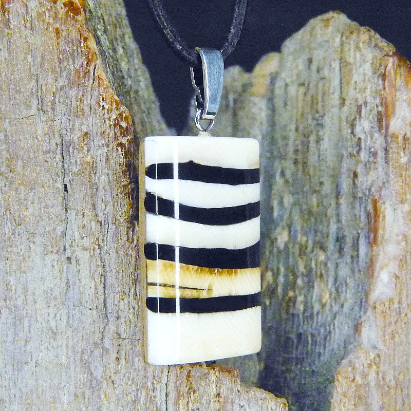 Eckiger Anhänger aus fossilem Mammut-Elfenbein gestreift mit leichten Färbungen und feiner Maserung.