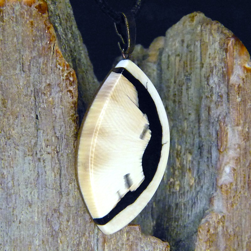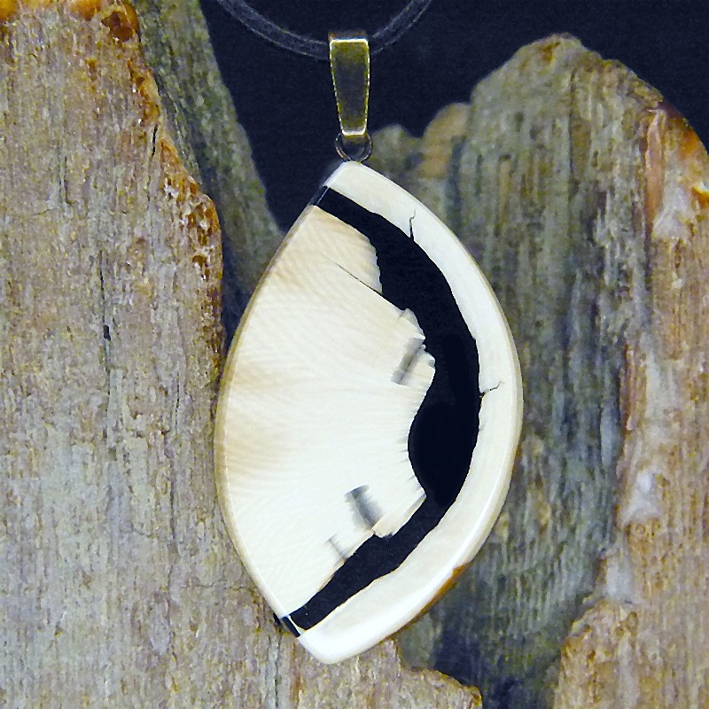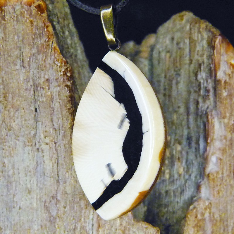 Anhänger aus fossilem Mammut-Elfenbein mit braunen Färbungen und schöner Maserung.
