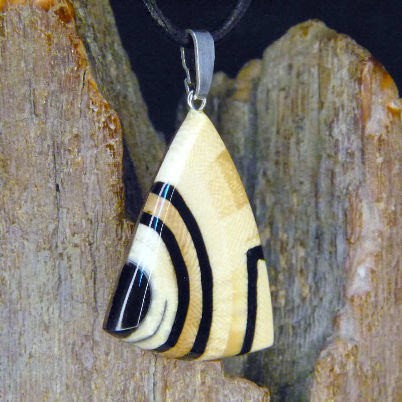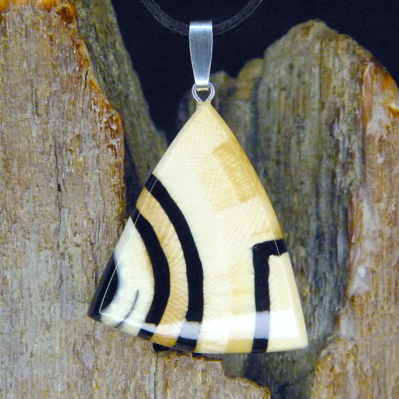 Anhänger aus fossilem Mammut-Elfenbein mit schönen Färbungen und starker Maserung.