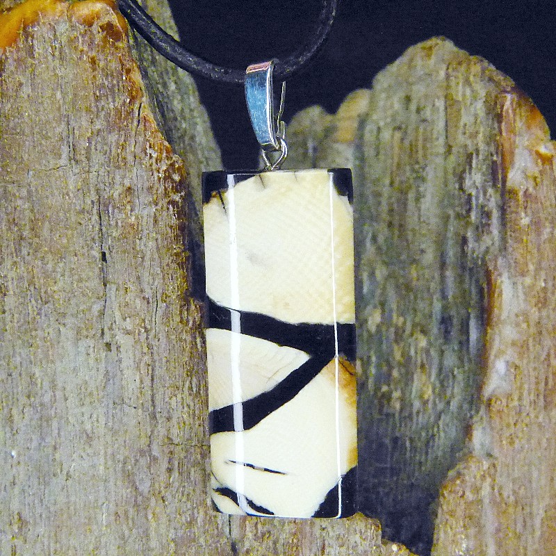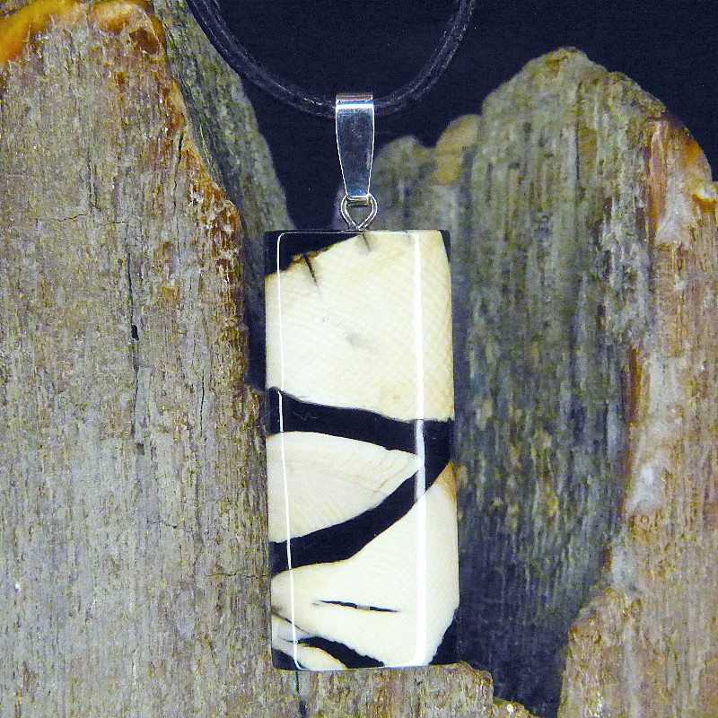 Anhänger aus fossilem Mammut-Elfenbein mit leichten Färbungen und starker Maserung.