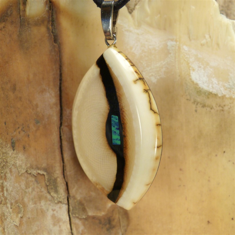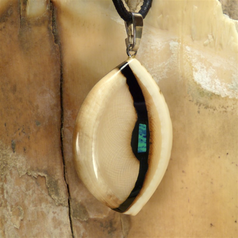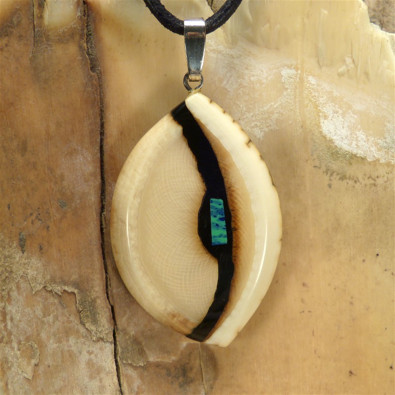 Anhänger aus cremefarbenem Mammut-Elfenbein mit feiner Maserung und leichter Rindenstruktur.