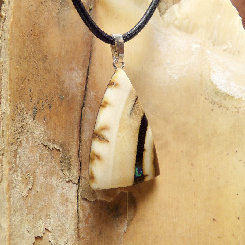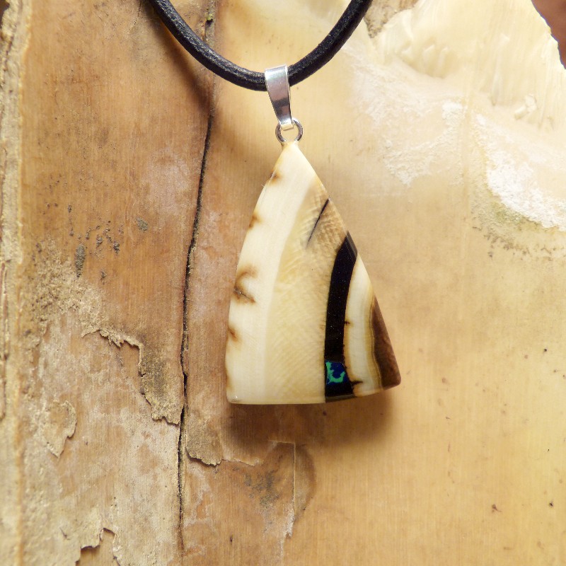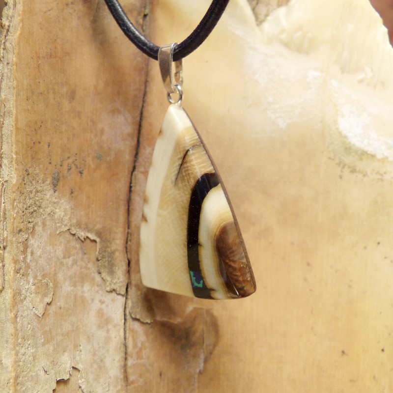 Kantig geschliffener Anhänger aus über 10.000 Jahre altem