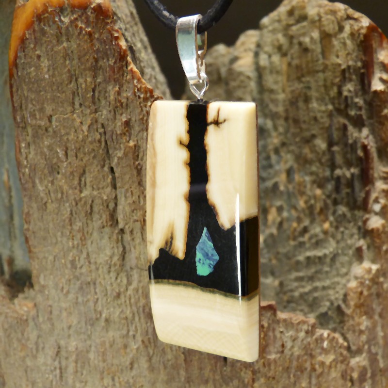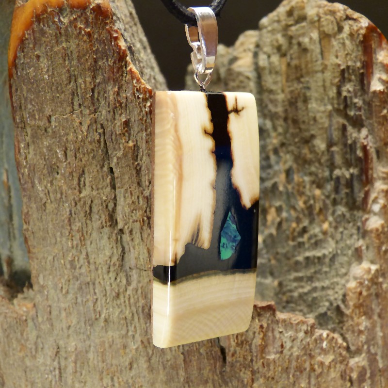 Kantig geschliffener Anhänger aus cremefarbenem Mammut-Elfenbein mit schöner Maserung und einer